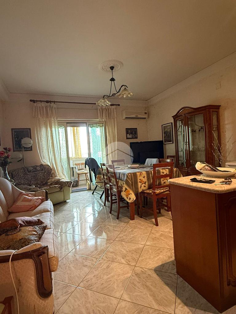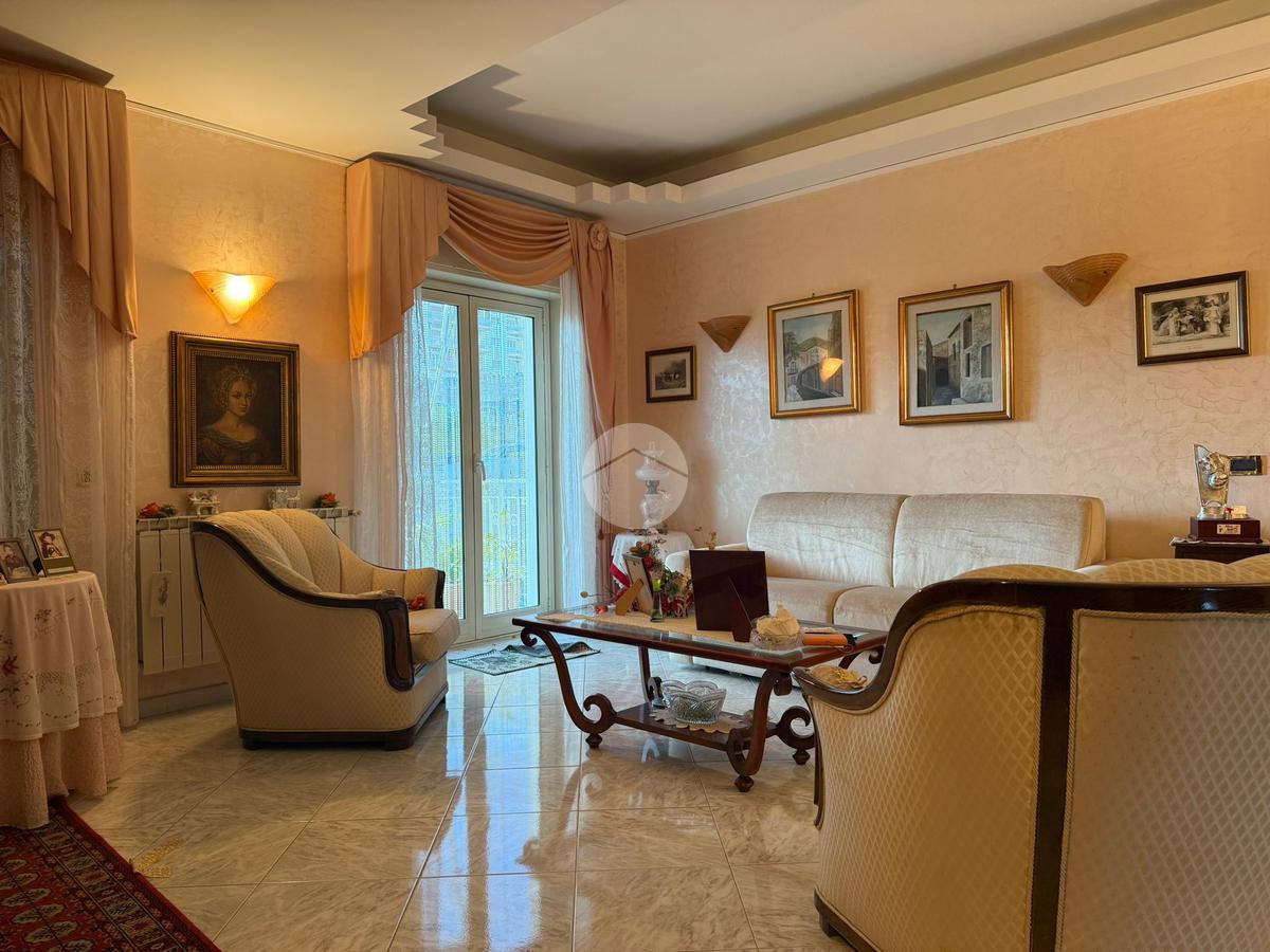 L’appartamento si apre su un luminoso soggiorno servito da balcone.