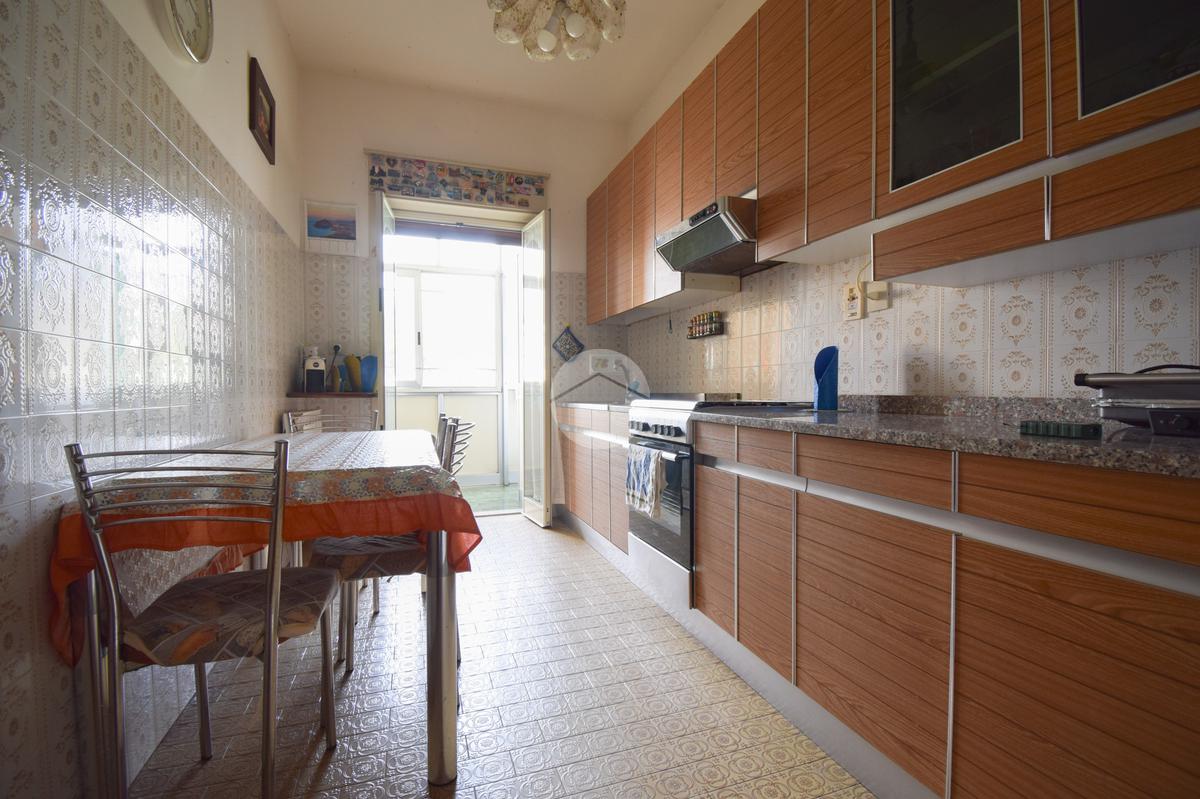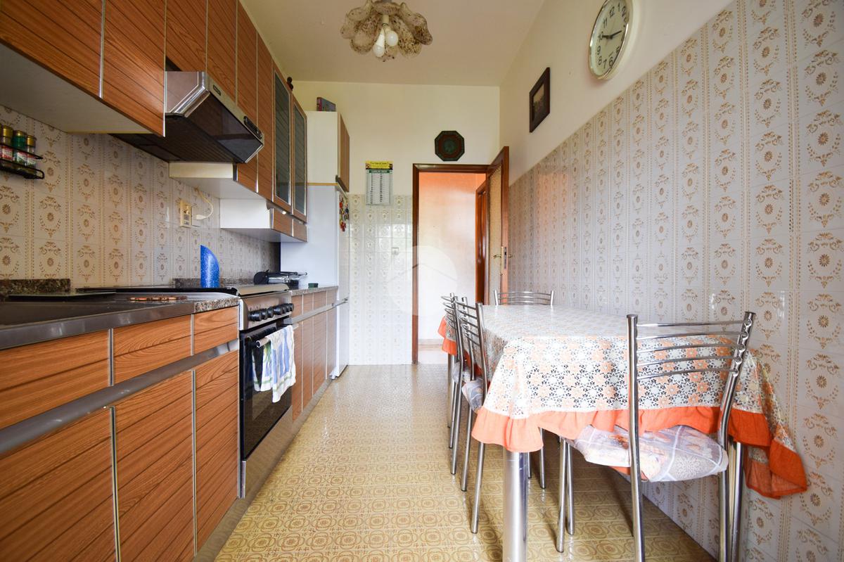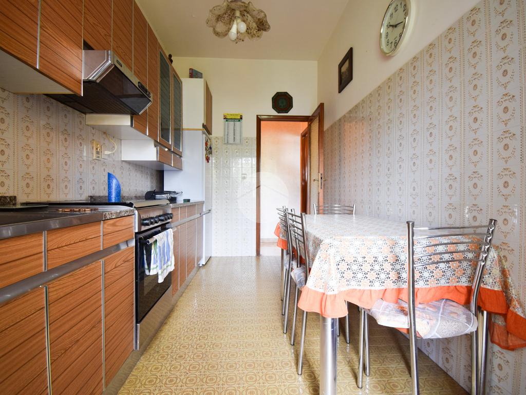 La cucina separata dal soggiorno pur se non di comode dimensioni può ospitare un tavolo per veloci pasti giornalieri.