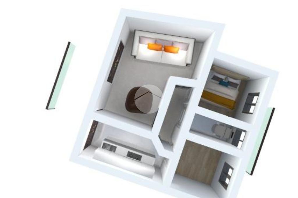 La zona notte offre due camere da letto e un bagno ben rifinito.